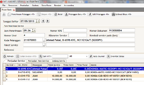 SAT.SMP adalah software bisnis perbengkelan terbaik dan termudah untuk digunakan, fasilitas yang sangat lengkap dapat diandalkan, dan dikembangkan khusus untuk bidang jasa perbengkel mobil dan motor. Alikasi ini sudah mendukung bisnis proses operasional sehari-hari serta saling terintegrasi. SAT.SMP dirancang untuk memenuhi kebutuhan pengusaha perbengkelan, dibuat berdasarkan dari survey para analis yang handal sehingga mampu menciptakan suatu program yang sangat canggih dan dapat diandalkan untuk pengembangan usaha perbengkelan. Setiap user dapat mudah sekali untuk mempelajari program ini, karena program ini dirancang berjalan di sistem operasi Windows, sehingga dapat memudahkan user dalam penggunaanya, aplikasi ini juga sudah di design untuk ruang lingkup Local Area Network (LAN).