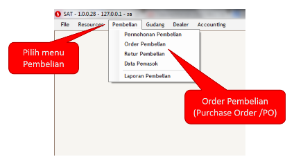 Pada SAT.SDM terdapat menu-menu standar seperti yang dijumpai di aplikasi SAT Nusantara yang lain yang berbeda hanya keberadaan menu Dealer, yang digunakan sebagai menu penjualan kendaraan.